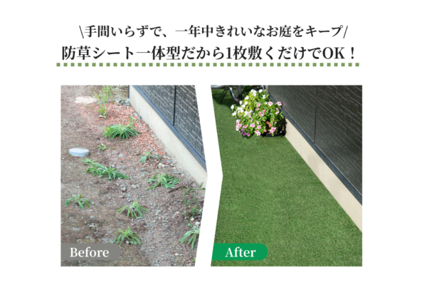 防草対策と景観を両立した、リアルな質感の人工芝です。