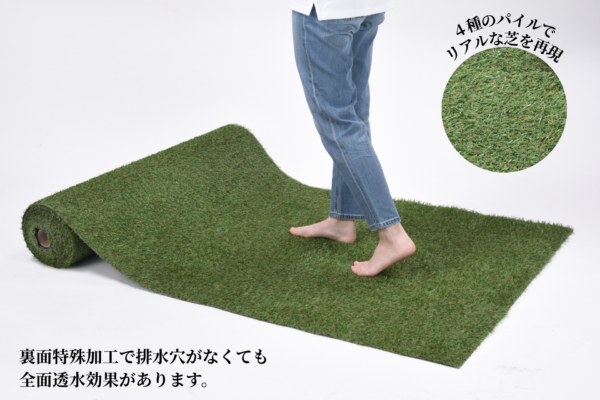 自然な色合いのパイルを組み合わせ、本物の芝生に近い見た目を実現しました。