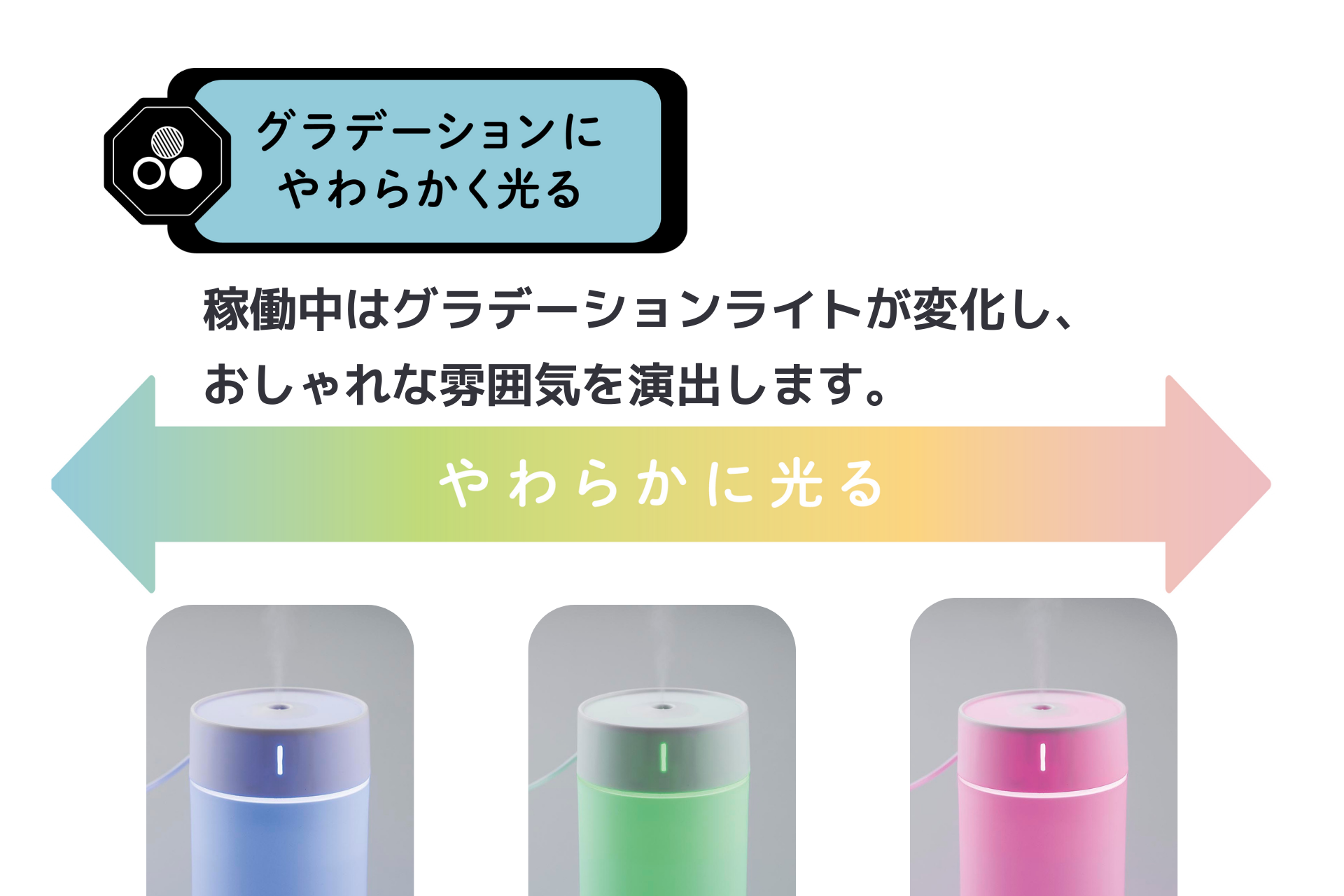 稼働中はグラデーションライトが変化し、おしゃれな雰囲気を演出します。
