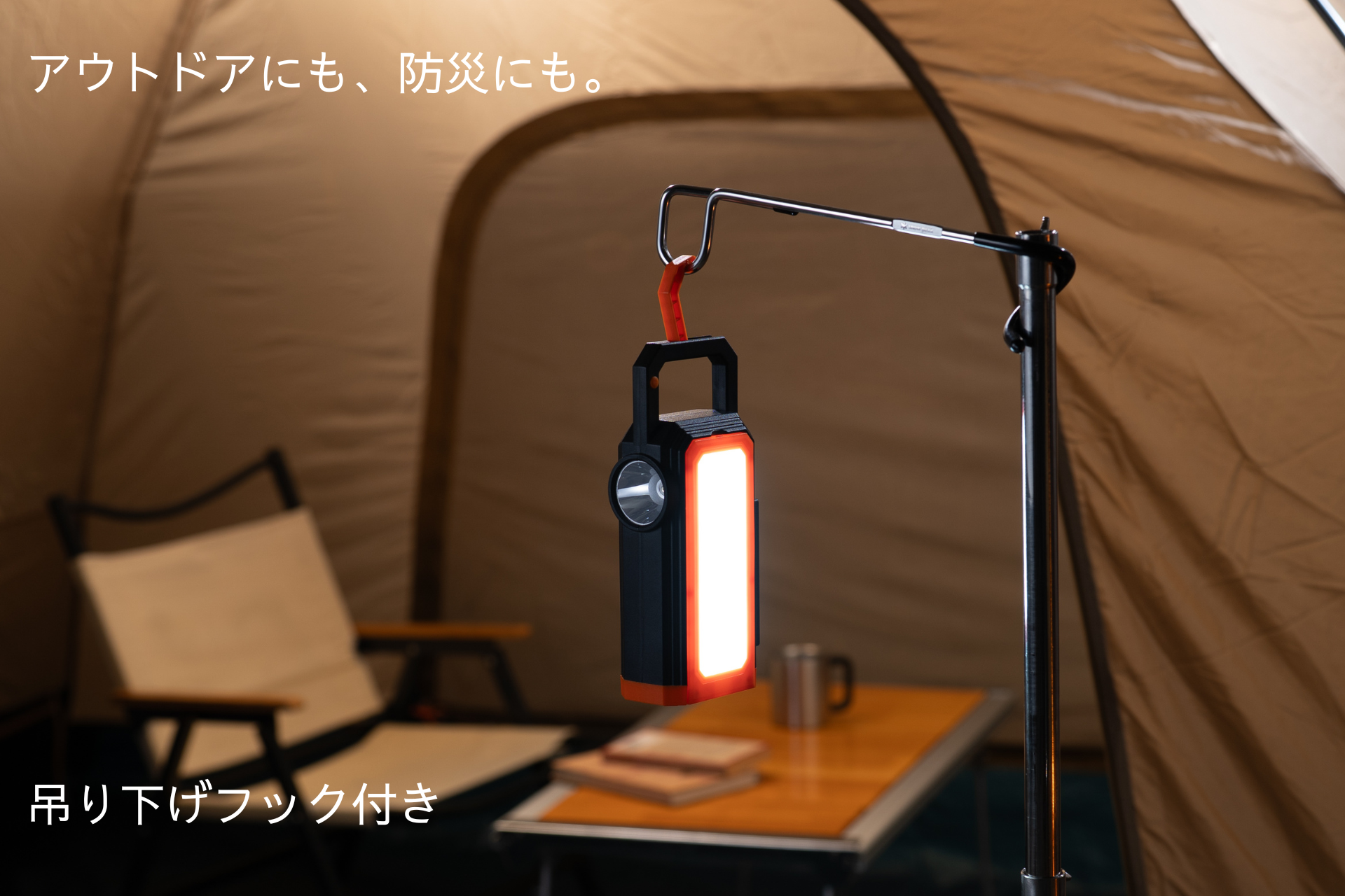 テント内やキャンプサイト、室内照明として活躍します。